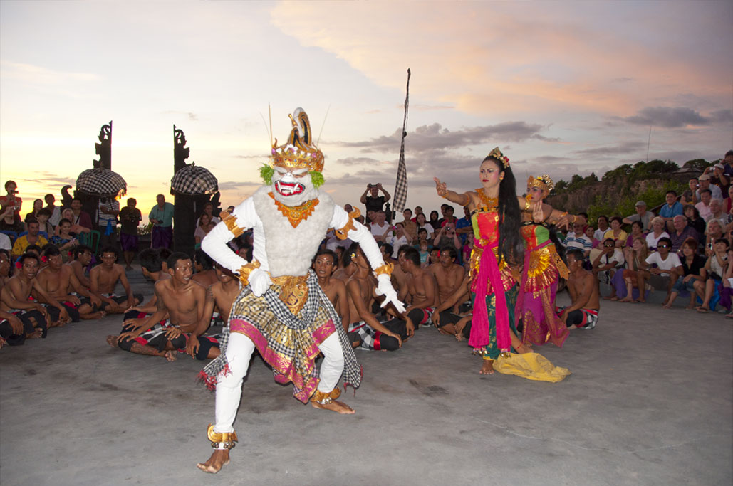 Breakfast at hotel. Morning transfer to TANJUNG BENOA BEACH for WATERSPORT ACTIVITIES. Package Including : * 1 x Banana Boat Ride * 1 x Visit to Turtle Island with Glass Bottom Boat Optional water Sports can be taken on the spot on personal account, such as parasailing, jet ski, flying fish, snorkeling, sky tube, sea walker, etc. Afterwards, continue to ULUWATU TEMPLE. Uluwatu Temple, or Pura Luhur Uluwatu, one of six key temples believed to be Bali's spiritual pillars, is renowned for its magnificent location, perched on top of a steep cliff approximately 70 metres above sea level. It is an ancient temple of ULUWATU, located on top of the cliff jutting out to the sea, hundreds of meters above the Indian ocean. At 6.15pm to see an evening performance of KECAK is Bali’s most dramatic dance performance popularly known as monkey dance, enacted by a group of over 100 men, dance is concentric circle. The story is taken from ancient Hindu epic, the Ramayana. It starts at 18.00pm for one hour duration. |